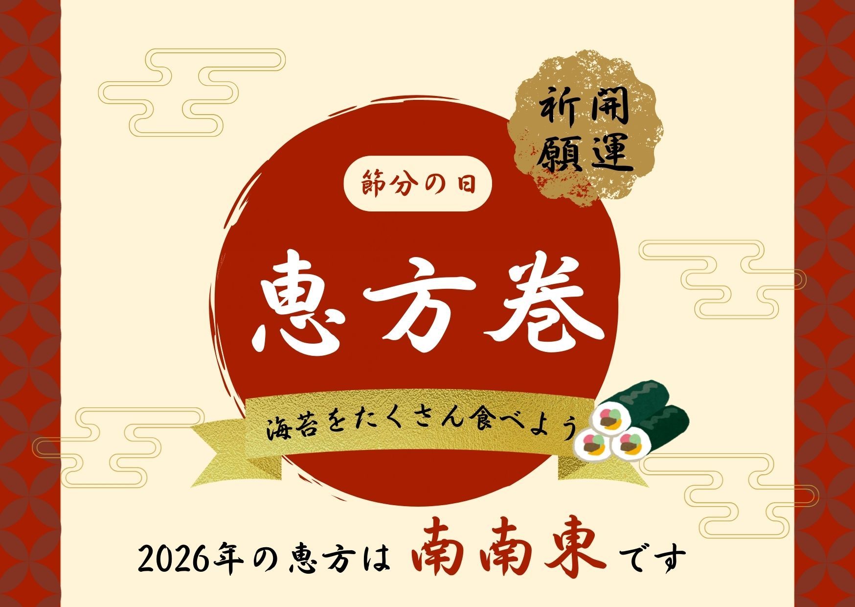 いよいよ2月3日(金)は節分の日です!みんなで楽しく海苔巻きを作って南南東を向いて食べましょう(*^-^*)